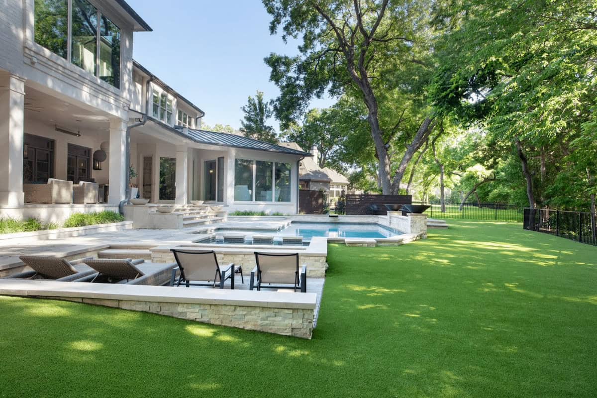 Many similar homes are enjoying the benefits of artificial grass in yards with swimming pools.
