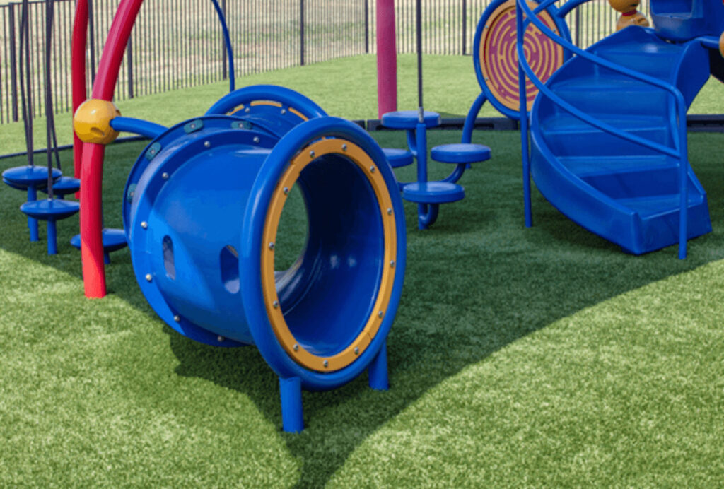 The best synthetic playground grass has a high face weight and is made from polyethylene fibers, which are durable yet soft and perfectly mimic the look and feel of natural grass.