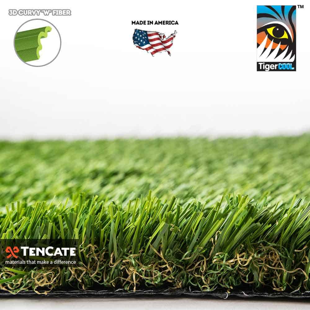 TigerTurf Diamond Light Fescue synthetic grass is a premium artificial grass model and is a top choice among the nation’s certified contractors and homeowners. In addition to its realistic appearance, Diamond Light Fescue artificial turf features a proprietary open ‘W’ blade shape technology, which allows this turf to handle moderate foot traffic for all types of landscape installations. The turf backing features an extremely strong tuft bind technology where the grass blades are triple reinforced into the backing. No more worrying about your dog’s daily bone hunt! Manufactured to blend in with your natural environment, Diamond Light Fescue turf is a perfect water-saving landscape alternative.