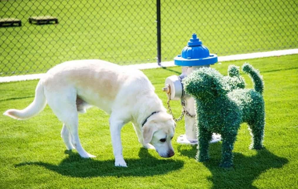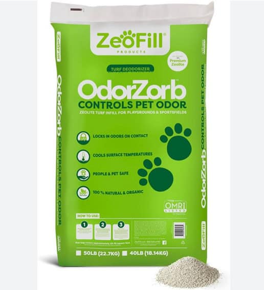 The makeup of the infill material matters. Pet owners should avoid crumb rubber or sand as this will absorb and trap the dog pee smells. Instead, a special antimicrobial infill should be used to neutralize odors.