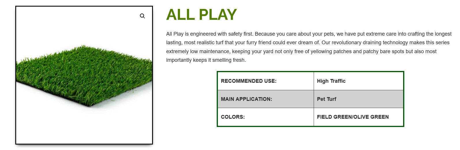 Of course, it’s also great for owners with very little maintenance and no digging, muddy paws or yellow patches.